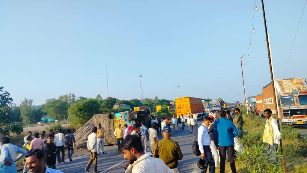 एमपी यूपी बॉर्डर के सागर जिले के चेक पोस्ट अटाकर्नेलगढ़ मालथौन में आरटीओ की चेकिंग के दौरान तेज रफ्तार ट्रक के आगे बैरिकेट्स धकेल दिया जिसे बचाने के चक्कर मे ट्रक पलट गया जिसमें सवार चालक और क्लीनर बाल बाल बच गए। ट्रक पलटने से आक्रोशित ड्राइवरों ने लंबा जाम लगा दिया। प्रदर्शन करते हुए आक्रोशित ड्राइवरों ने उपद्रव मचाने का प्रयास किया, हालांकि पुलिस ने मौके पर पहुचकर स्थिति को संभाल लिया। पुलिस ने सख्ती दिखाते हुए सड़क से जाम को खुलवाया दिया। जाम में फंसे करीब डेढ़ घण्टे से मुसाफिरों को राहत मिली, इस दौरान दोनों तरफ पांच पांच किलोमीटर दूरी तक जाम पहुच गया था। जिसमें एम्बुलेंस ,स्कूल से लौट रहे बच्चों की स्कूल बस ,यात्री बस फसी हुई थी जिससे उन्हें परेशानी उठानी पड़ी। ट्रक पलटने की घटना के बाद मौके से तैनात आर टीओ का अमला चेक पॉइंट से चपन्त हो गया।